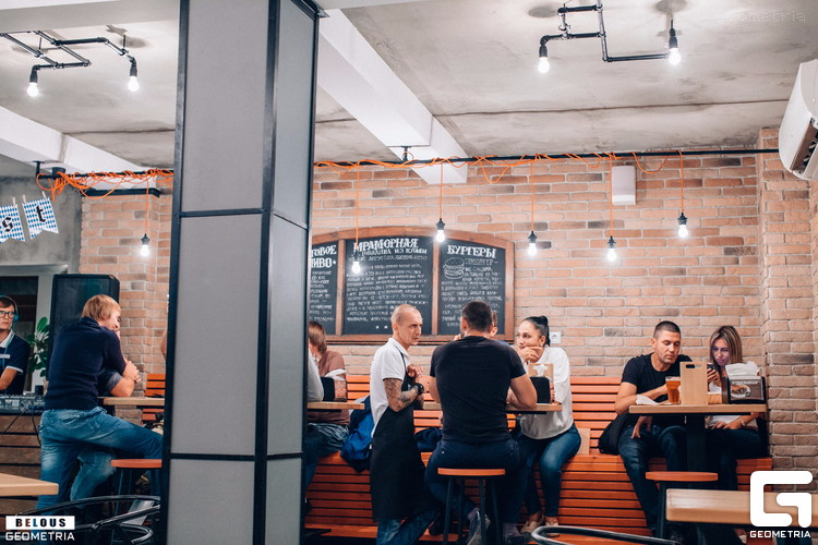 На стенах использовался белый гипсовый кирпич, который выкрашен белой краской и покрыт прозрачным лаком.