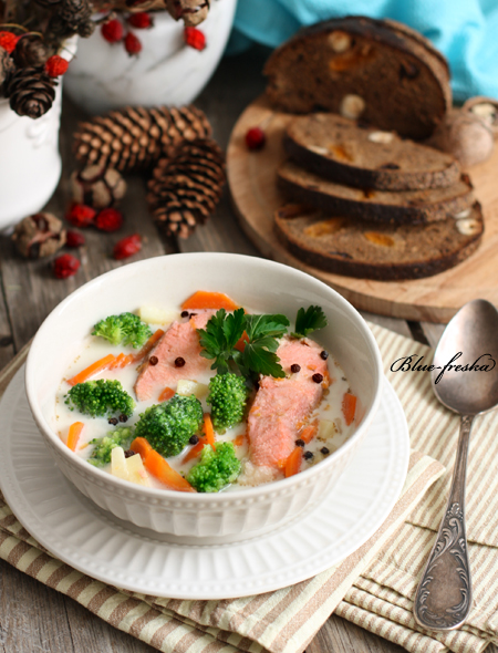 Такой густой, сливочный, сырный, с хорошим куском сёмги...ммм. Готовим?
