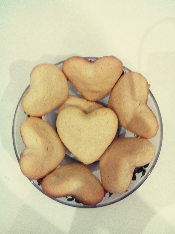 У меня получились вот такие сердечки. Пока пеку и даю на дегустацию мужу (см.ниже):)