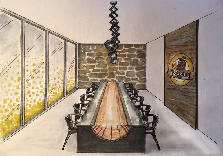 И когда я сотрудничала с дизайнером над проектом переговорной для пивоваренной компании Козел, она сказала, что даже в моде некая эклектичность: сочетание разных фактур, материалов, структур, смешение стилей. Когда она описала мне то, как она видит эту переговорную , я сначала засомневалась. Но в процессе визуализации этого проекта, я поняла насколько это здорово. Я получила огромное эстетическое удовольствие рисуя этот эскиз.