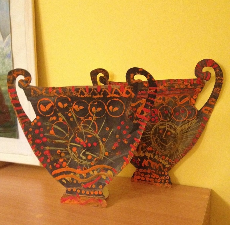 Древнегреческая живопись в вечернем мини-саде. Ребята попробовали себя в геометрической и краснофигурной росписи!