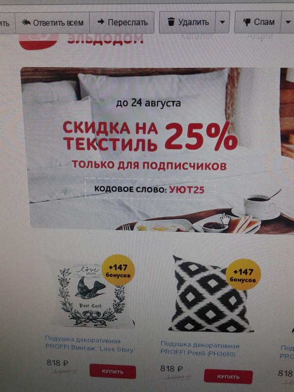 Скидка 25% по промокоду УЮТ25 в Эльдорадо на текстиль. Действует до 24 августа.