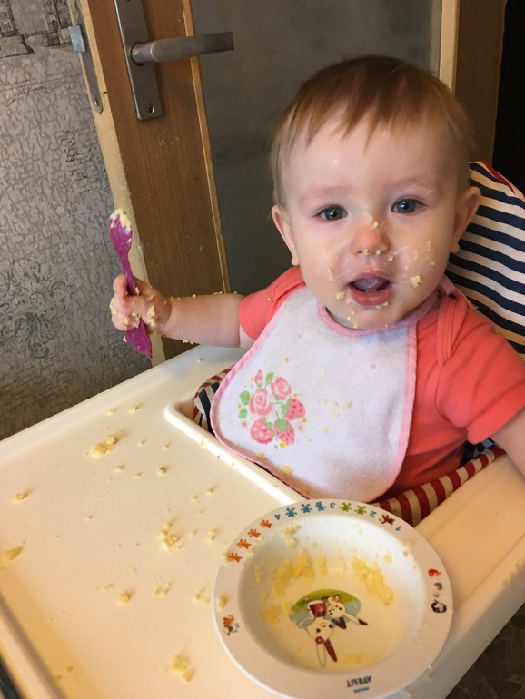 Леончику 1 год. Для истории: любит индейку с гречей, кефир и печенье. По ночам ГВ. С 10 месяцев с удовольствием перешёл на общий стол. 12 апреля сделал первые шаги без опоры. Много болтает на своём, на общем: Мама, папапа, да, неть, кака (кашка), абди (выражение радости и одобрения). Многие звуки с любопытством повторяет. Заводила. Втягивает родителей в игру «на раз»! )) (оглянуться не успеваешь, как уже бегаешь кругами за визжащим Леоном, а он за тобой).