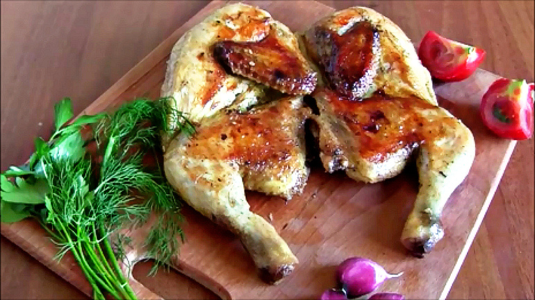 Цыпленок Табака (тапака) это жаренная курица (цыпленок) с чесноком.