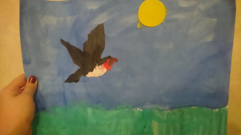 Начали учить это веселее стихотворение и под конец решили нарисовать картину по его мотивам))