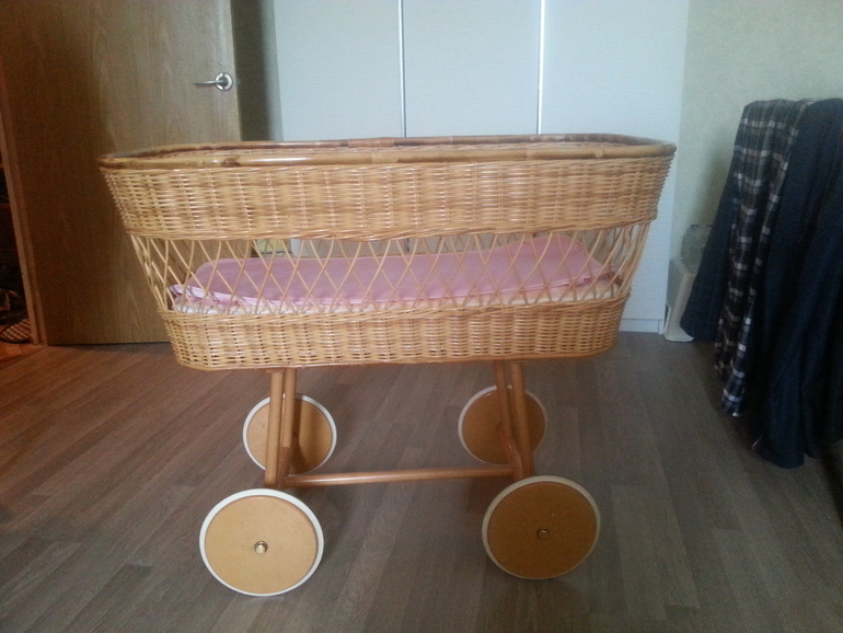 Продается деревянная кроватка-люлька. Колёса прорезинины,очень удобна в использовании,продаётся с матрасом ,хорошее состояние!