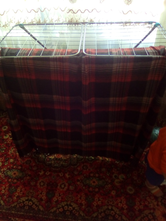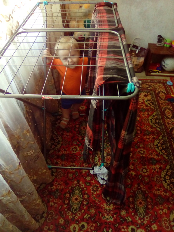 А у нас новое развлечение! У Олега появился домик, созданный из сушилки для белья, занавешенной покрывалом.