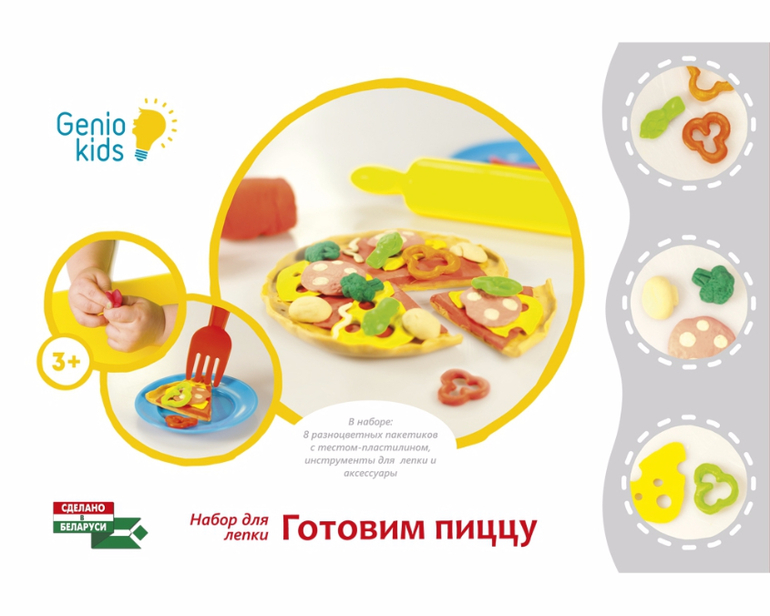 - 3.Набор для лепки "Готовим пиццу" Genio kids. Тесто-пластилин - это натуральный и совершенно безвредный материал, созданный из пшеничной муки. Оно легко смывается и не оставляет после себя грязи.