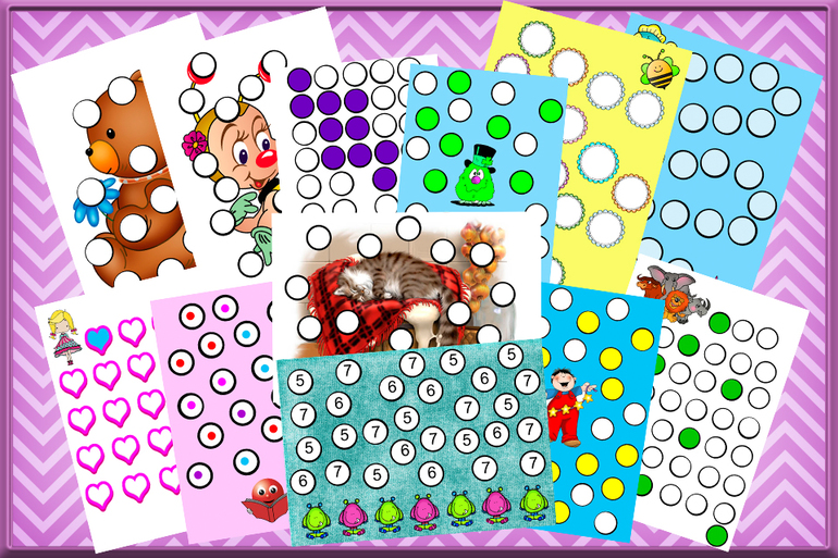 Состоит из : самых простых рисунков,сюжетных рисунков,заплаток на цвет,на цифры,на количество, с заплаток от точки к точке......и т.д.
