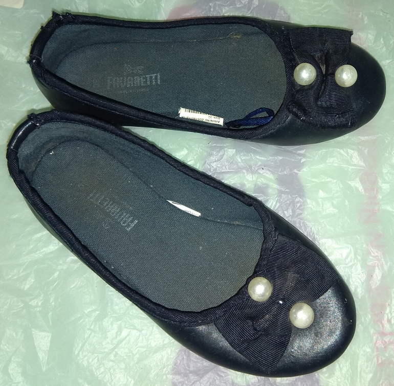 25)По стельке около 20 - ти см, утеряно с правого ботиночка металлическое украшение.