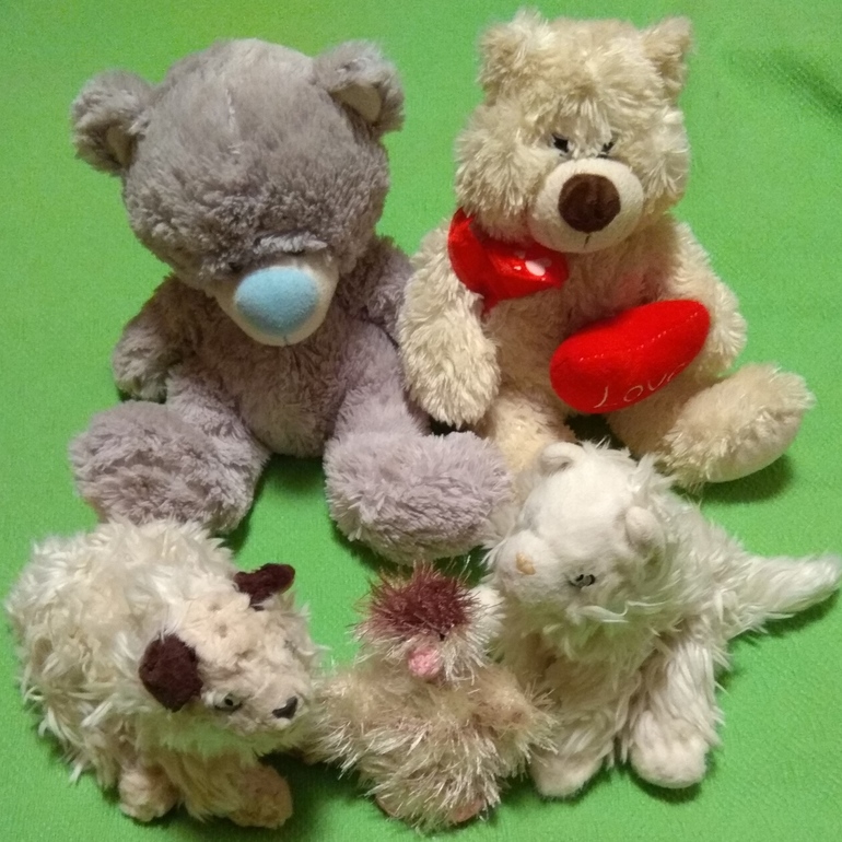 1) Мягкие игрушки, мишки с первого фото на брони.