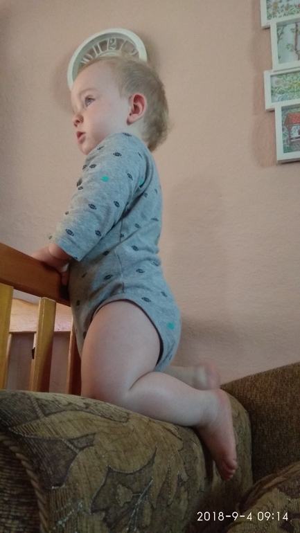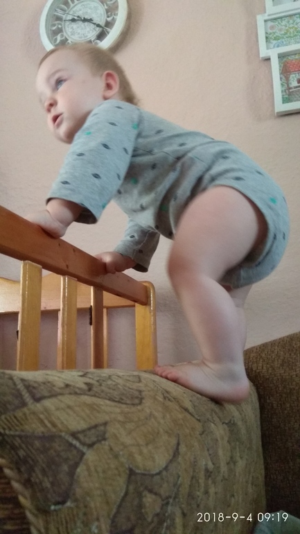 Кушает всё без разбора, ГВ только ночью, спим ещё вместе. Ночью часто просыпается, ползает по кровати, и засыпает где попало. Боюсь, что свалиться с кровати, так как я бывает не слышу этих перемещений😖😧