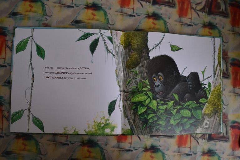 Эта милая,добрая история о малышке горилле,которая ранним утром плачет на дереве в джунглях.