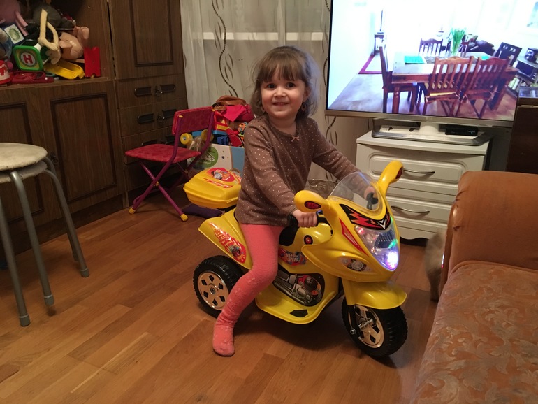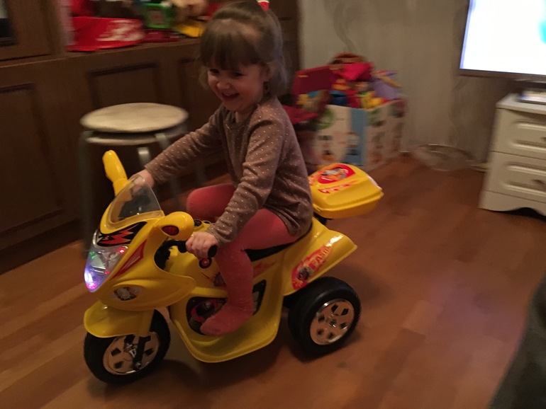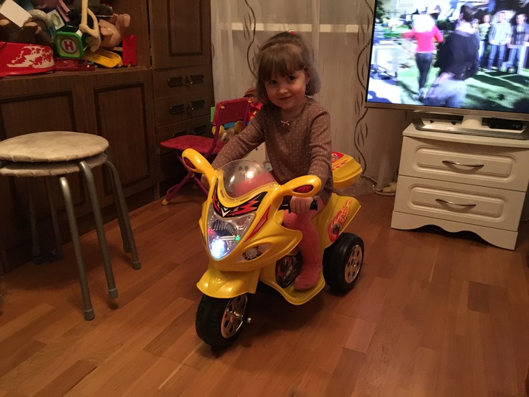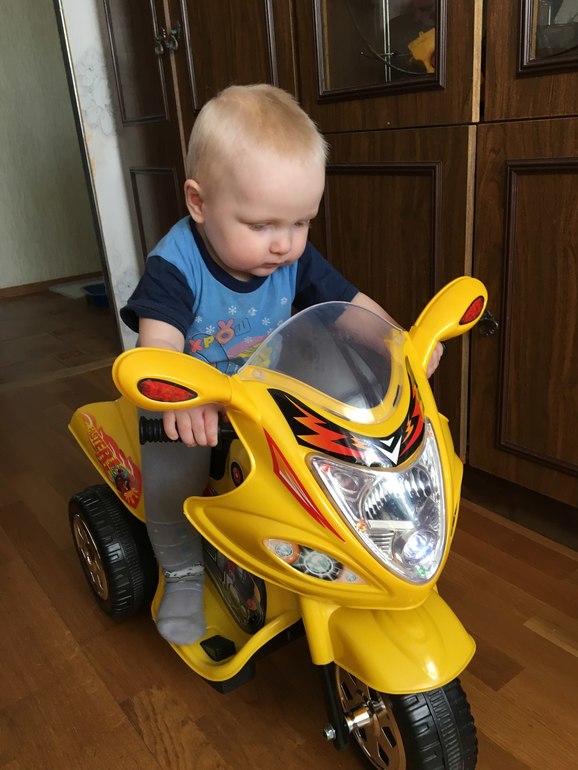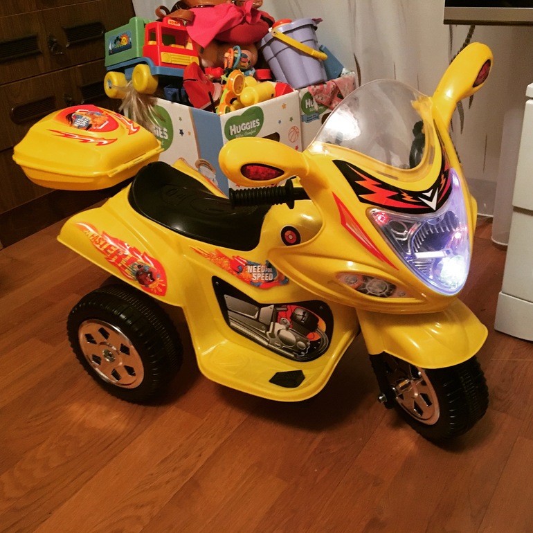Ну вот и пост про электро мотоцикл!!его я увидела случайно на сайте, но их не было в наличии, был ещё голубой , но так же уже разобраны( конечно, скидка то 50%), но листая дальше, я увидела ещё такой же жёлчный, только с красными наклейками (angry birds) и о чудо, они были в наличии!)по цене 1749) я переспала ночь с этой мыслью, а на утро заказала, ещё списала бонусы (так как балда выкинула все купоны на 500 р), но все-равно получилось очень хорошо 1400 р. А так как озадачил нас крестный, то мы решили, что мотоцикл как раз он и подарит)а велосипед уже купили мы) Итак, привезли мы домой только велосипед, мотоцикл оставили в машине, т.к стол был на следующий день, а крестный сам хотел подарить и собрать крестнику подарок)мы все ждали с нетерпеньем))и вот принесли нам его, они с мужем собрали и я увидела сие чудо!)нам всем ооочень понравился он!!а доске больше всего )))гоняла весь вечер потом, как гости ушли)еле спать завтравили))агрегат просто класс!!!за такую цену это просто подарок!)огни светятся, фонарь горит очень ярко!!удобный очень!музыка, всякие эффекты (заводится, мотор рычит, сигналит ) , мелодии переключаются. Переключается езда вперёд и назад)сынуля тоже прокатился)правда на педаль жала я)и ему тоже очень понравилось!!в общем этой покупке я безмерно рада!)а точнее этому подарку)но и так бы я его купила))а на след.день знакомая ездила в дм, их уже не было!)ну конечно, халява))