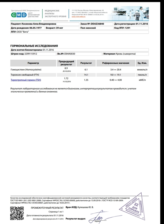 Ура!!!! Я наконец-то справилась со своим вредным гомоцистеином. За 10 дней упал до 6.1. Теперь я з