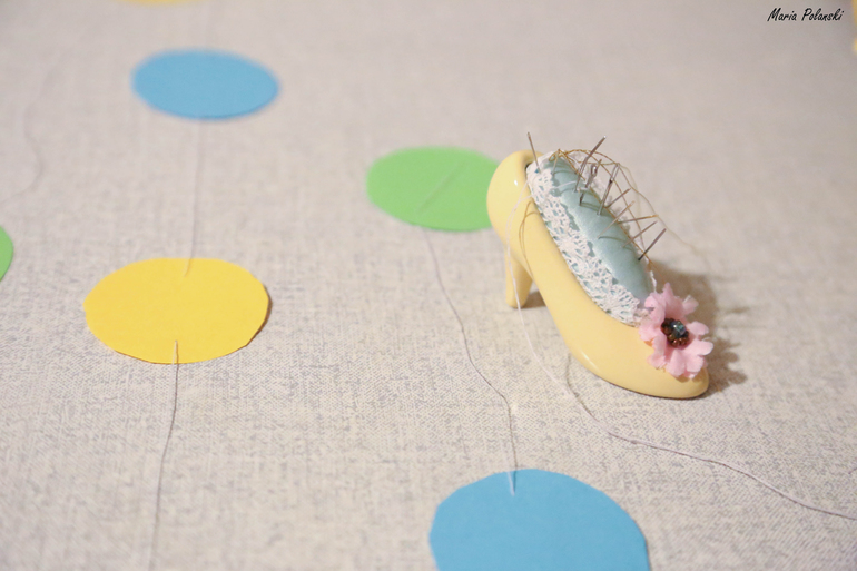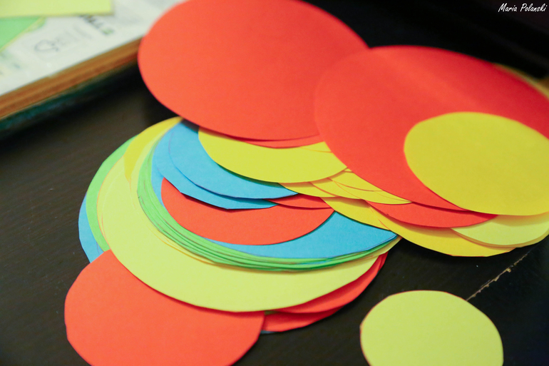 Ночью накануне дня рождения у нас во всю кипела работа. Мы с мужем, уложив Варю спать, расчерчивали круги разного размера, вырезали их и нанизывали на нитки.