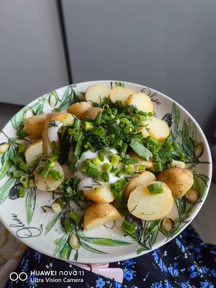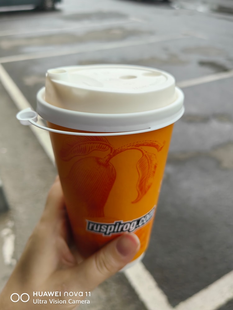 Кофе, нектарин, картошка со сметаной и зеленушкой, суп, хлеб, печеньки, бутерброд с плавленным сыром, сырный латте. Норм.