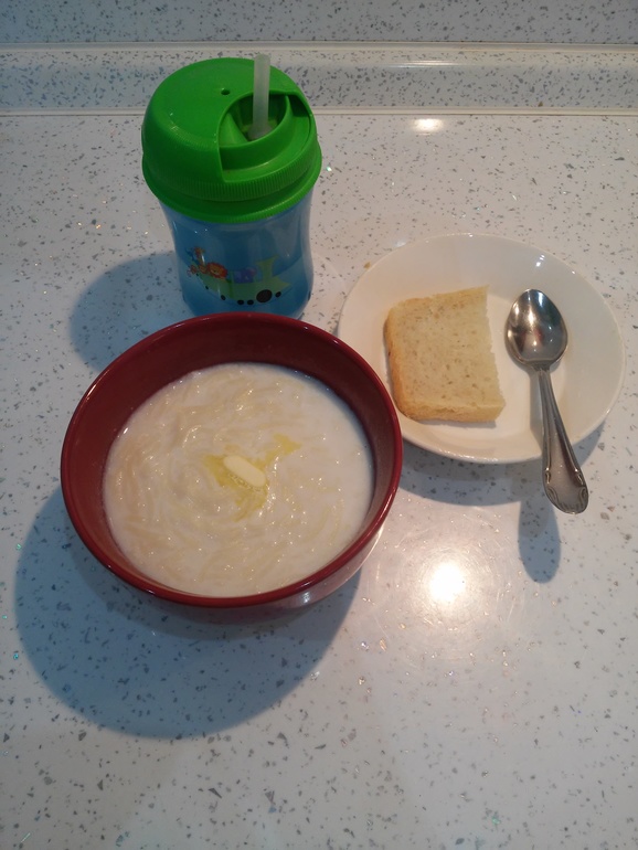 2. Рисовая каша ( пропорции на глаз, круглый рис промываю, заливаю водой и варю почти до готовности, затем разбавляю молоком, соль, сахар и варю до готовности, в конце слив.масло)