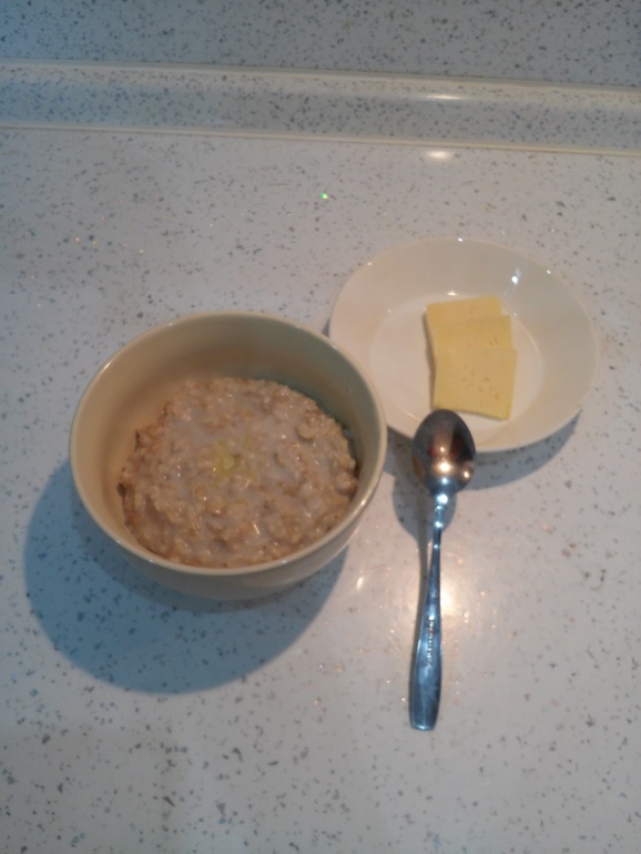 1. Овсяная каша (1 чашка молока, 1 чашка воды, 1 чашка овсяных хлопьев долгой варки, соль, сахар, слив.масло)