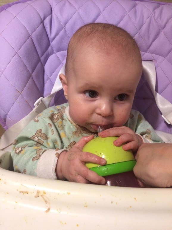 сидит, стоит у опоры, ползает, умеет пить из трубочки