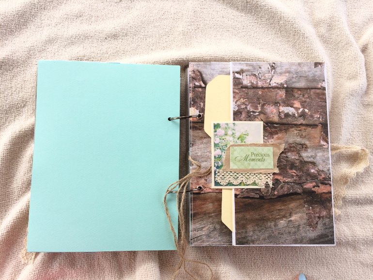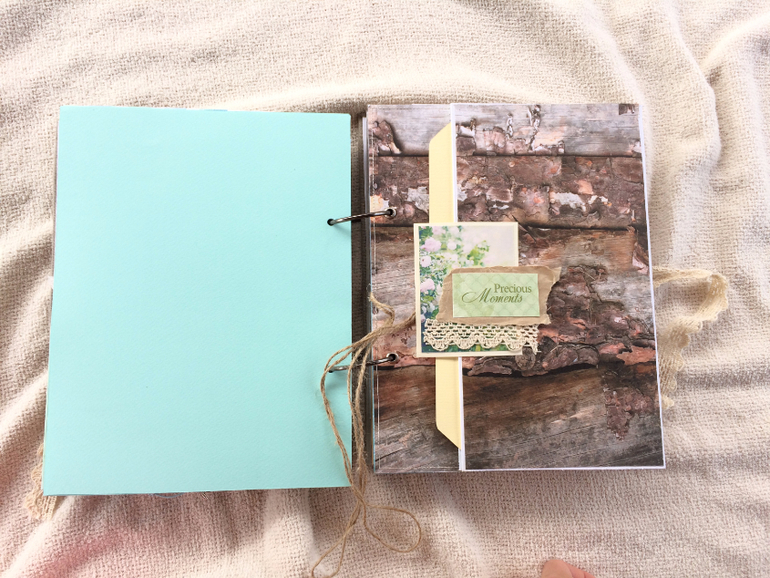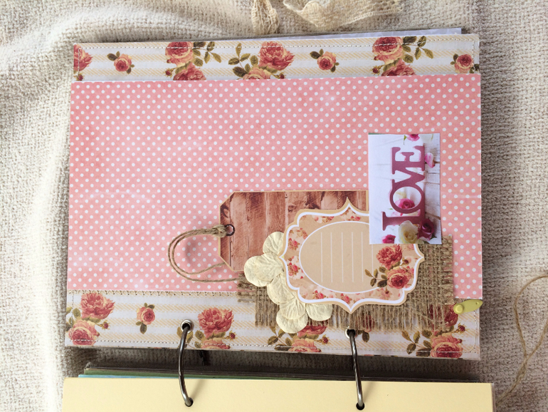 Формат альбома 25х20 см, благодаря своей конструкции вмещает более 100 фотографий 10х15 см. Альбом в мягком тканевом переплете на кольцах, на обложке мягкая рамочка для фотографии, внутри 5 оформленных страниц на разные тематики (новый год, отпуск и т.д.), кардсток для свободного вклеивания фотографий, а также конвертики для фотографий и памятных мелочей... как вы наверное догадались альбом предназначен для хранения ярких моментов повседневной жизни))), текст на английском, так как сама девушка проживает заграницей.....