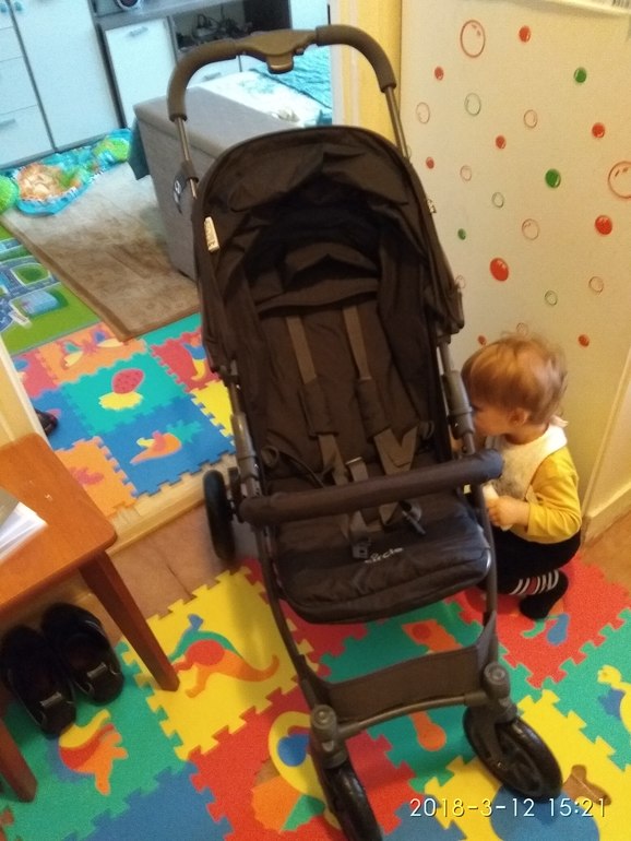 В пятницу 9-го решили купить новую коляску, т.к. я скоро поеду в Нарву. Наша старая фирма Бриттон совсем стала разваливаться. Колесо стучало, козырек шатался, а при складывание коляски два раза отлетал шурупик один, из-за чего потом было не разложить коляску обратно. В первый раз повезло шурупик не потеряли, а вот во второй раз мужу пришлось силиконовую накладку делать. Вообщем заказали новую на кауп24. 9-го вечером уехала с сыном в гости к свекрови в Копли. Уже в субботу гуляя с сыном в коляске отводилось колесо.
