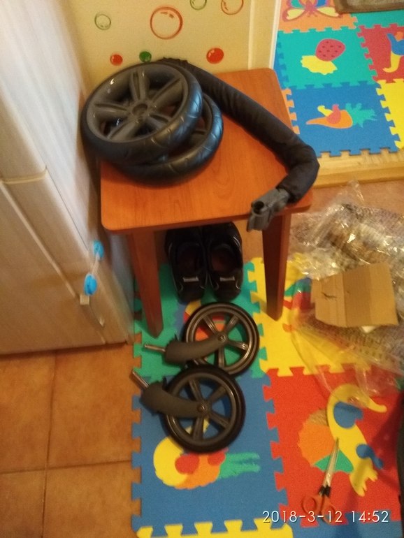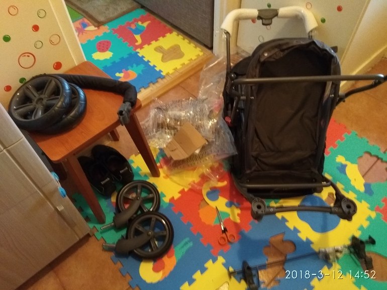 Народу нет. ( Почти окраина, конечная остановка). Иногда машины проезжали, я пыталась парочку тормознуть, но всем как то фиолетово. Хорошо попался один прохожий и помог, увидев у меня в одной руке колесо. Кое как изалентой прислал вторую часть. Сказал пружина лопнула. Именно это колесо все время стучало. Я хоть до дома смогла доехать. Сегодня ее на помойку муж отнесётся. Вчера новую привезли. Собирала ее без инструкции как конструктор для взромлых, почти как мебель. Когда собрала только тогда инструкцию нашла😂. Вот я лоль. На самом деле оказалось не так уж и сложно. Меня просто сын отвлекал все время. Вот она наша новенькая стоит теперь ждёт когда мы ее обновим.(погода дрянь , я ещё стирку вчера закатила, комбез сына ещё не высох, а другой теплый не хочется пока доставать, тем более он ему немного большой ещё) вообщем сидим дома.