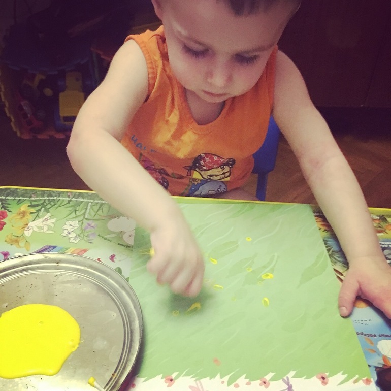 Немного солнца вам) Я ненавижу зиму, на столько, что в холода меня посещает мысль уехать из России, но весной я снова люблю родные березки😂 и не могу представить свою жизнь без них) Странно, но и Мирослав не любит гулять зимой, капризничает, на площадку не ходит, с горки не катается. Может в снегу немного покапаться и просится домой. Хотя, почему странно? Это же мой сын, мама не любит зиму и сын тоже не любит) мама-сова и сын ложиться в 11) мама поёт и танцует, пока посуду моет и Мирослав отплясывает, плескаясь в раковине) Что бы не хондрить, будем создавать себе настроение сами) сегодня мы играем с желтым цветом) Первое что мы сделали-это искали нашу капельку из Творчества с пелёнок) Сын бегал по квартире и звал ее «КАААААА», столько радости было, когда нашёл) Поиграли с карточками, почитали что бывает жёлтого цвета, отправились по квартире искать желтые предметы. В холодильнике нашли банан и лимон, поели😁 и начали творить. Из жёлтого пластилина сделали мышкам зёрнышки, покормили их. Дальше украшали поле желтыми цветочками. Рисовали ватной палочкой, тренировали захват, но сын все равно зажимал палочку в кулачок, ничего, все ещё впереди. И напоследок, разукрашивали цыплёнка с помощью губки. Потом всех и всё собрала и посадила в ванну, вот тут раздолье) вся ванна красивая, желтая. Мирослав очень любит рисовать, и пальчиками и кисточками, на стене всегда висит ватман для его художеств, в общей сложности, он рисовал 40 минут и спал ночью крепко)