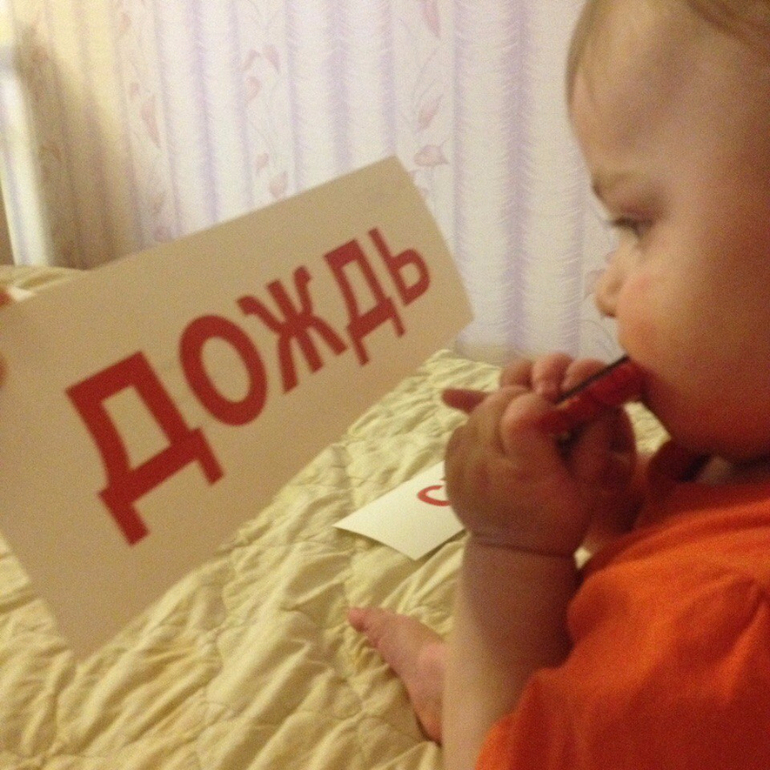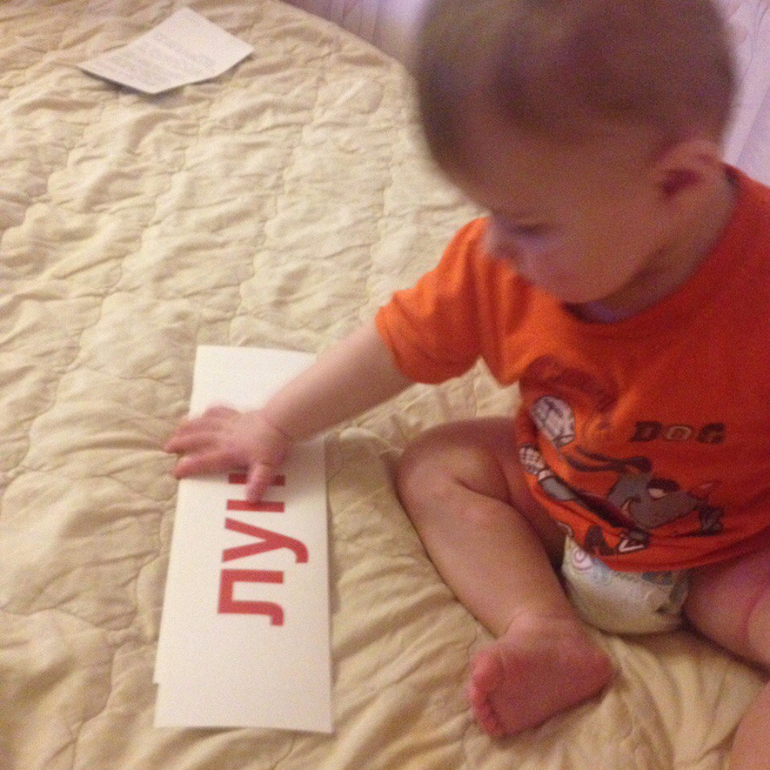 А вот и наши занятия по самому знаменитому комплекту из Умницы. Чтение с пелёнок. Это тот комплект, с которого мы начали нашу дружбу с Ранним Развитием. Помню, как в 1,5мес. показала ему карточку с его именем. На второй день показа он её узнал, улыбался, дрыгал ручками и ножками) (комплекс оживления) Сейчас мы уже большие) смотрим карточки и ищем этот предмет в доме. Играем с ними, развешиваем по дому, летаем над ними, погоду изучаем из окна и из коляски) Сейчас мы уже не просто радуемся карточкам, а как -то внимательно и вдумчиво их изучаем. Ну и конечно, если попросить показать его то, или иное слово, то он обязательно покажет правильно. Значит как минимум запоминает, и память мы точно развиваем. А вообще чтение-это самый мощный инструмент для развития интеллекта. И я верю, всё, что я покажу/расскажу в этом возрасте, обязательно отложится у него в голове и поспособствует его развитию.
