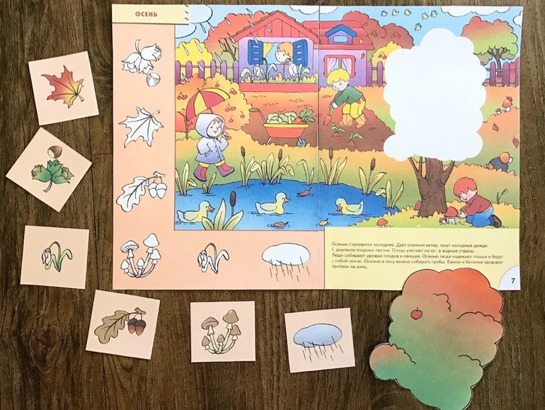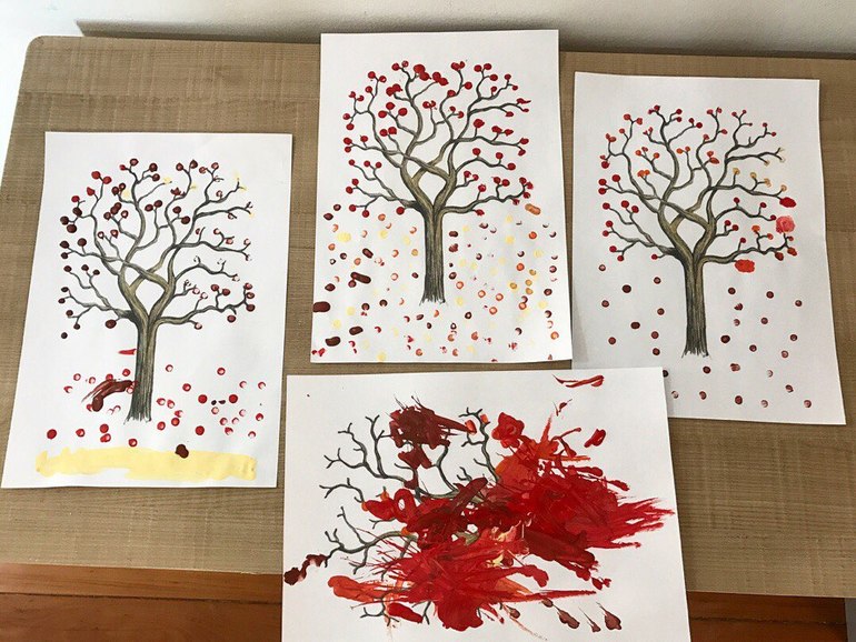 Со старшей группой беседовали о том, что такое осень в России. Делали задание из "школы семи гномов", пели песенки про осень и дождь, а еще рисовали листья деревьев осенью с помощью ватных палочек.