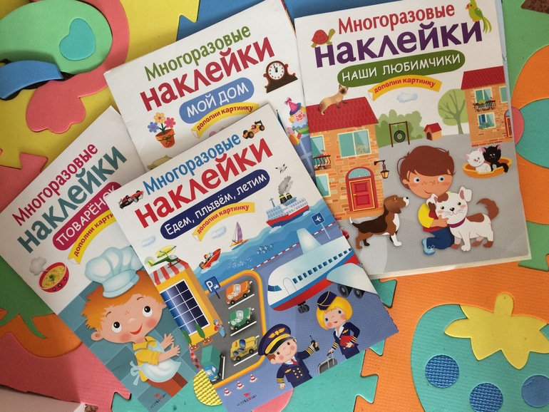 Клеит куда попало, без логики, но очень ему нравится, что картинки можно потрогать, особенно машинки. Хорошие книжки, правда Сеня часто рвёт случайно, когда отрывает наклейку (не люблю порванные книжки) и наклейки сами рвутся или приклеиваются к станице так, что отрываются только с куском бумаги.