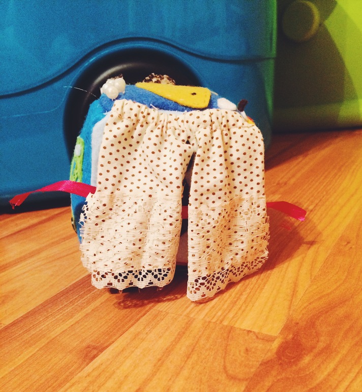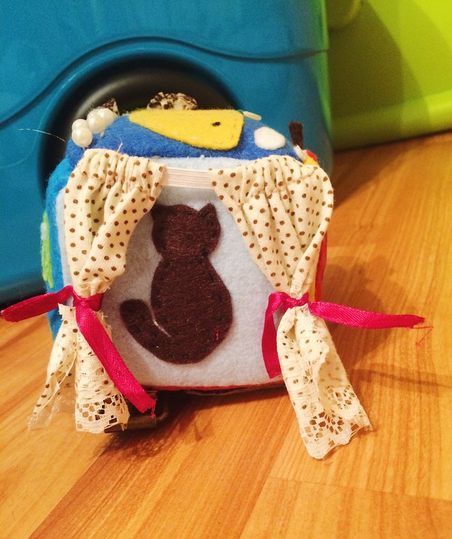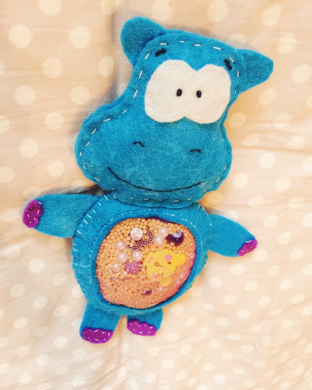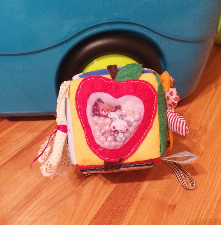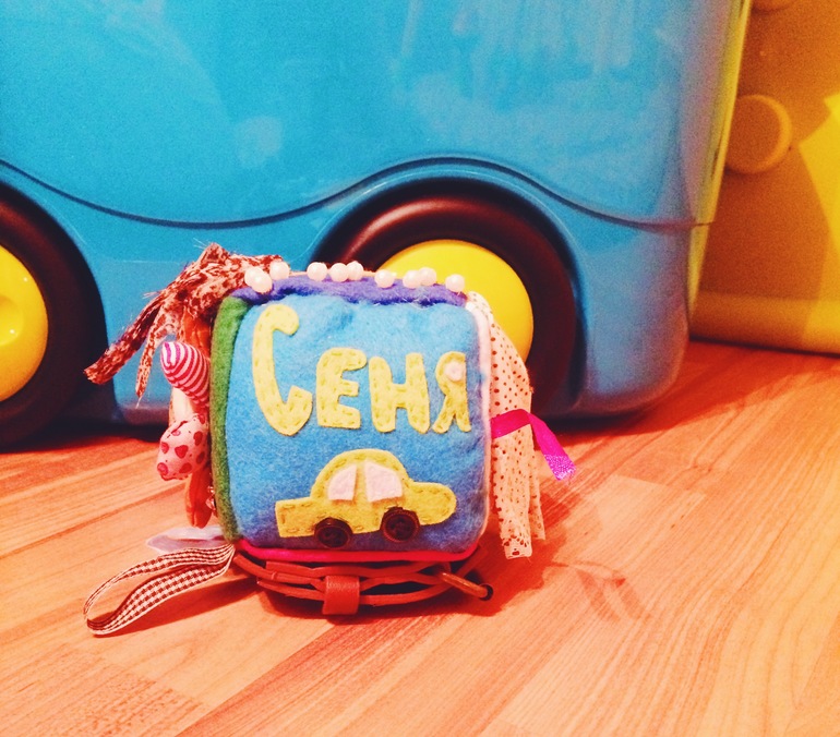 Сеню заинтересовала грань на кубике, который я сшила недавно, с яблоком-искалочкой. Сшила для него отдельно бегемотика))