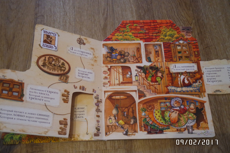 В книге много окошечек, дырок, дверок- это делает чтение увлекательным даже для самых маленьких слушателей. Я купила книгу годовалому ребёнку, но старшие дети тоже в восторге от книги. Благодаря иллюстрациям дети быстро запомнили длинное стихотворение.