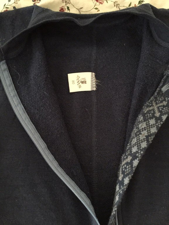 Жаккардовые рукава очень дополняют синий цвет и , если издалека увидеть малыша в таком комбинезоне - сразу понятно , что это Janus.