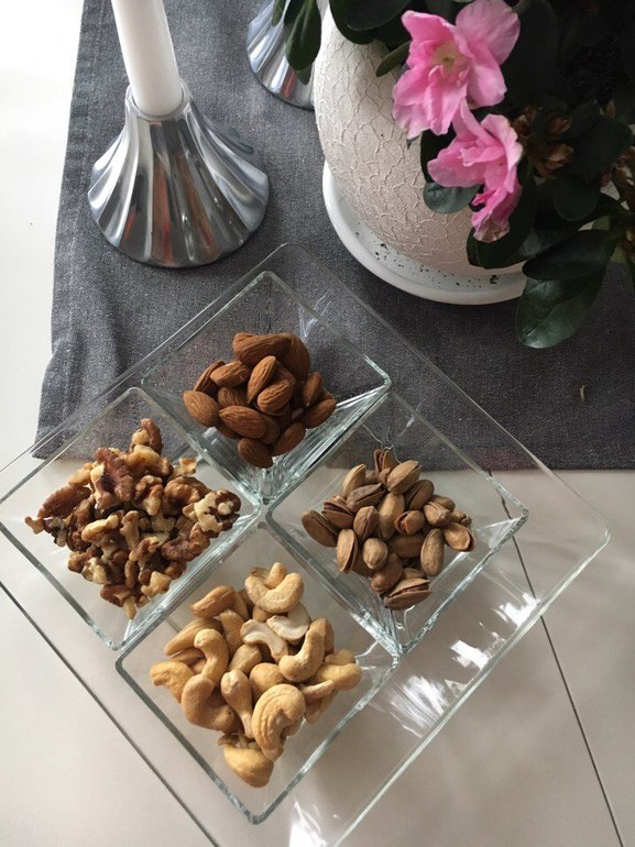 Так же в свой рацион стоит включить орехи. Это замечательный перекус, который всегда можно держать под рукой. Они в своем составе имеют много пищевых волокон, углеводов, растительных белков и жира с высоким содержанием меди, марганца, железа, фосфора, кальция, магния, калия, витаминов группы В, Е Также, орехи полезны, как хорошая профилактика от сердечнососудистых заболеваний и атеросклероза.