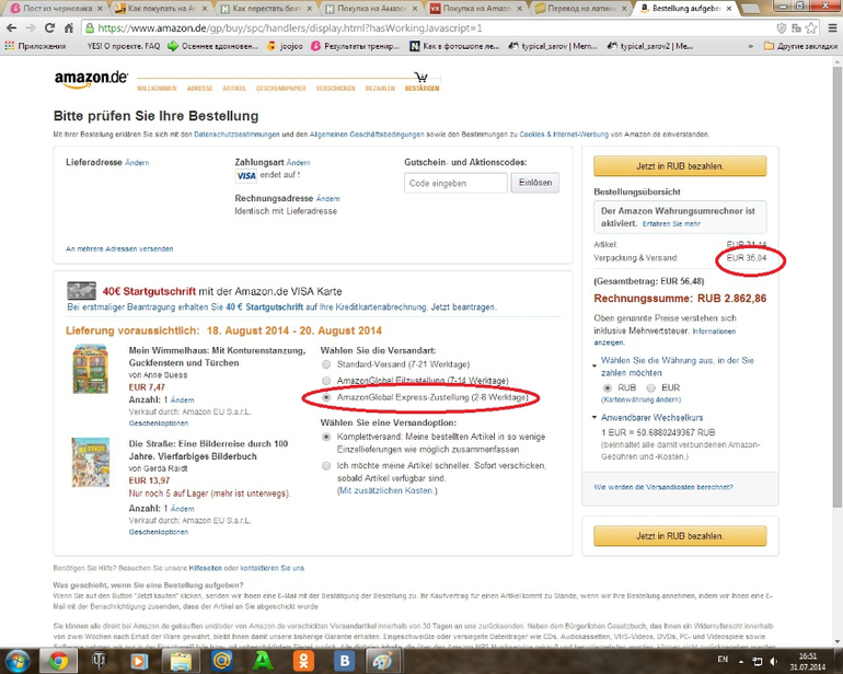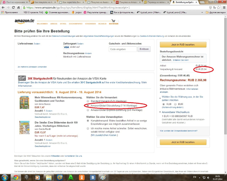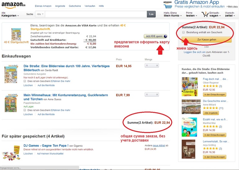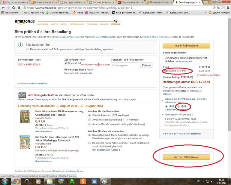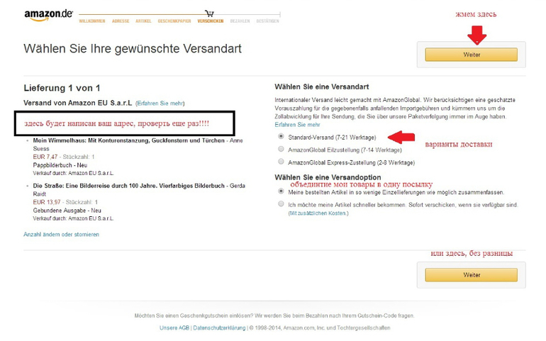 Общая сумма заказа 22.94 евро, это без доставки. Жмем большую желтую кнопку.