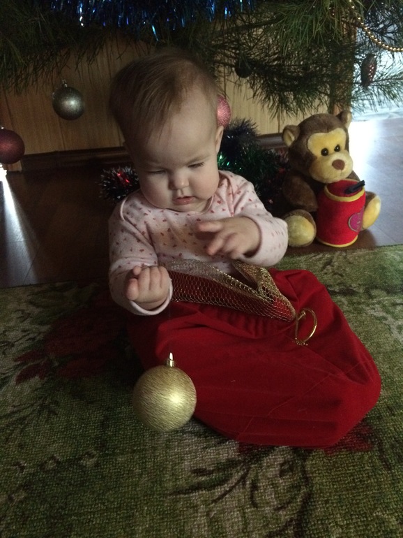 Показывает какая она большая (поднимает ручки вверх), показывает «нет-нет» головой, ещё появился жест «дай», ручками :) в ладушки и сороку так и не играет, иногда может надеть несколько колечек на пирамидку.