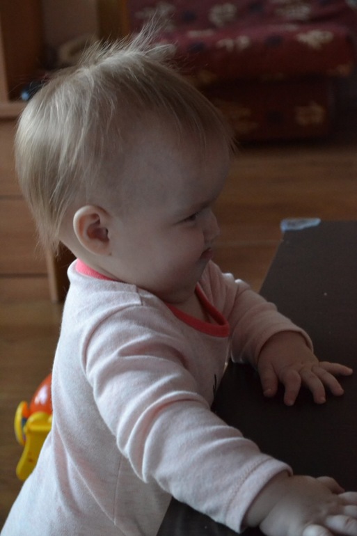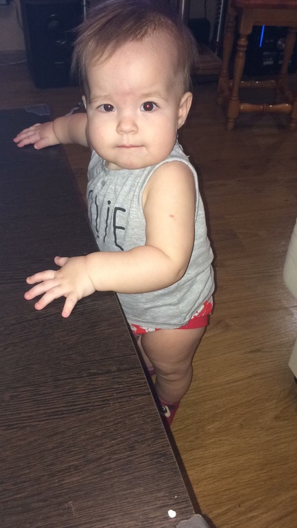 Из умелок. Довольно уверенно ходит у опоры, за ручки. Иногда отпускает руки и стоит секунд 5, радуется))
