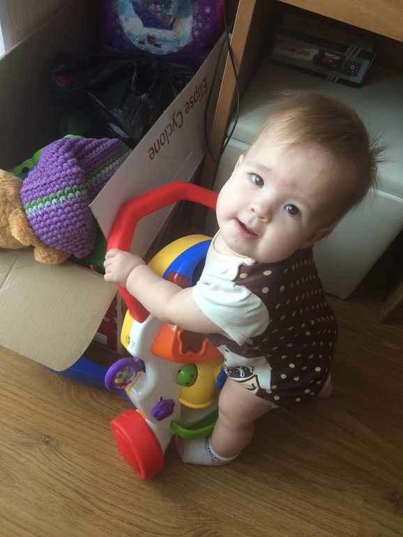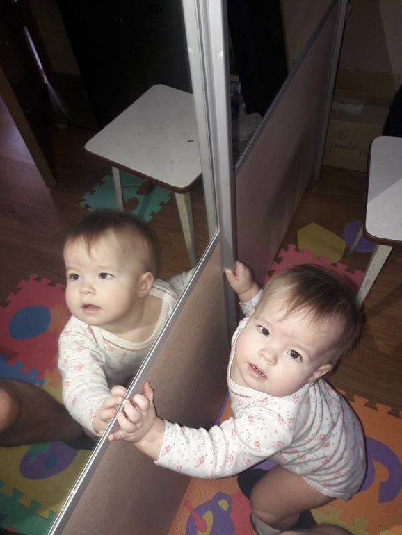 Что мы умеем. А научилась Дана слазить с кровати/дивана, неуверенно пока, но принцип поняла. Забывается, отпускает руки от опоры, и стоит, потом садится так же без опоры. Ходить сама не пытается, боится. Даже если держать за одну руку, и шага не сделает, сразу вторую ручку мне тянет ))) Появился указательный жест, теперь если носишь ее на руках, эта мадам показывает куда ей надо) еще показывает где киса и Папа. Много болтает, кивает головой «да», машет «нет-нет», ручками показывает «дай». В ладушки так и не играет, зато показывает «кшшши полетели на головку сели» 😄 Научилась типо целовать, говоришь «Дана поцелуй маму», она губами прижимается к моей щеке)) и если сказать «Дана дай поцелую тебя», тянется, подставляет щечку☺️ Показывает глазки у людей и животных. Ну вроде с умелками все)