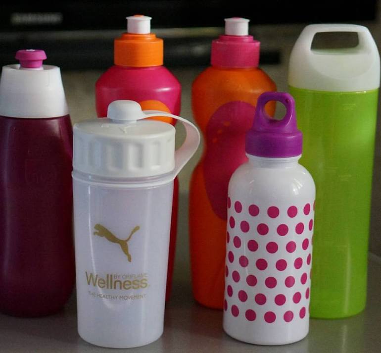 Поэтому мы давным-давно не покупаем бутилированную воду, т.к. у нас у всех есть свои бутылки для питья, для тренировок, бутылка, которая лежит в машине и бутылочки, с которыми мы ездим на велосипедах.