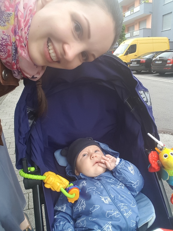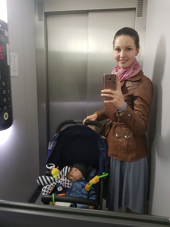 Вот сегодня гуляли😃 похолодание заставило впервые одеть малышу карточку уже месяца два как купленную 😉