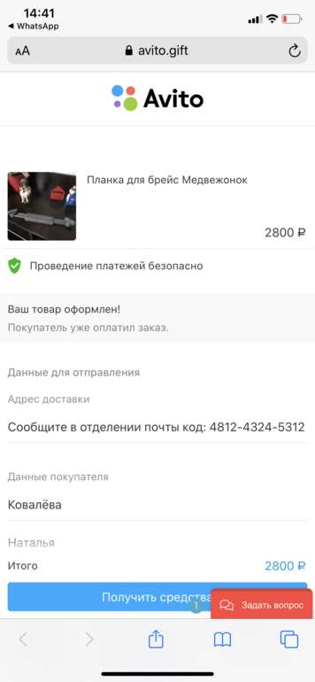 Потом переходят в мессенджер и кидают ссылку с просьбой подтвердить оплату: