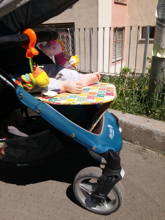 Несколько часов и вуаля) Фанерка вынимается,там кармашек на липучке. Подставка отстегивается. Крепится широкой липучкой под ремнем для складывания снизу коляски 🙈