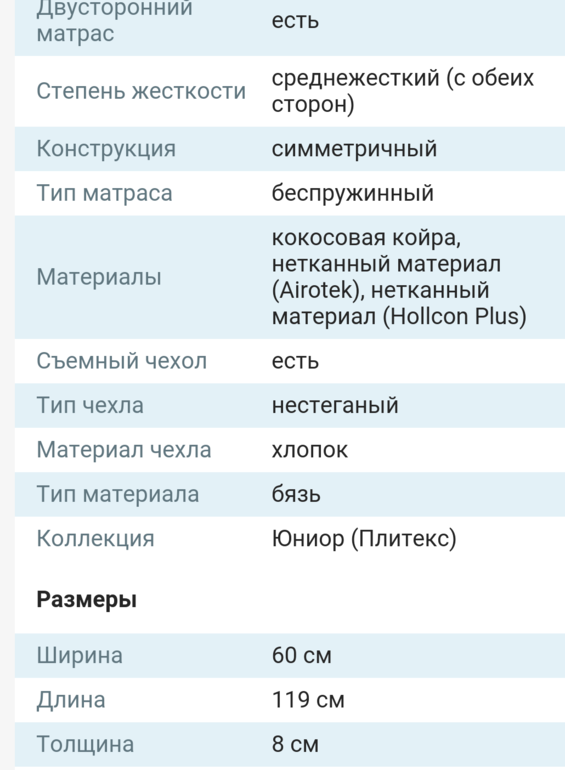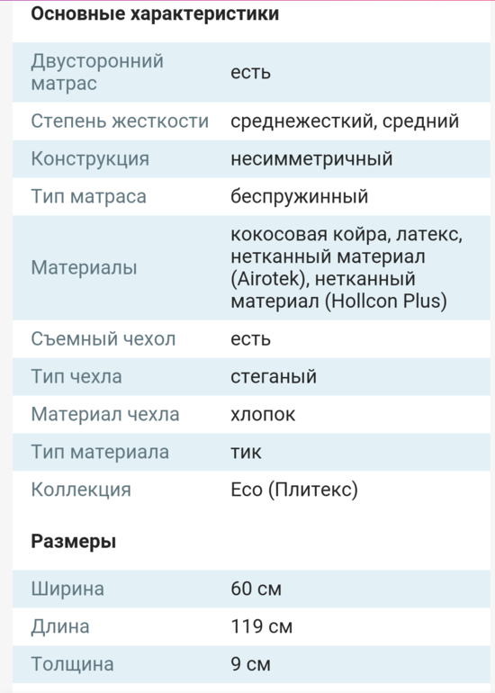 Девочки, помогите понять какой должен быть матрасик.. их таккк много, что капец. Кокосовый этот материал ок.. должно ли еще что-то быть, жесткость: среднежеский с обоих сторон; с одной среднежесткий , с другой помягче; или вообще жесткий; ортопедический или это просто трата денег.. да и цены у всех разнятся капец.. посоветуйте что-то. Вот ниже для примера две разные характеристики -что лучше? ?? И скрин с сайта.. а то я с ума сойду😁