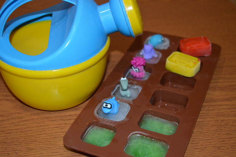 Мы с Матвеем уже приносили домой с улицы снег в ведерке и наблюдали, как он в тепле превращается в воду. А вчера решили спасти прилипал из подлёдного царства, поливая на ледяные кубики теплой водой.