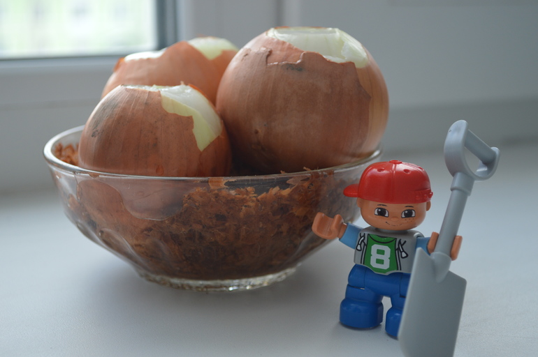 Сегодня мы с Матвейкой решили посадить на окошке лук. Взяли небольшой салатник, насыпали туда опилок, налили воды и посадили три луковицы. Теперь ждем результат!