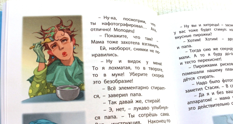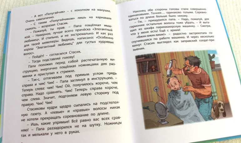 Рассказы в ней подобраны очень добрые и полезные. ))) Мальчишки и девчонки не просто играют, учатся и веселятся. Они помогают родителям, просто окружающим людям, даже полицейским. Или вот, например, родные не просто дарят дедушке мобильный телефон, к концу рассказа они сами понимают, что толку нет от подарка, если они сами не будут звонить дедушке и говорить, как любят его. В некоторых рассказах ребята делают открытия вместе с родителями: например «семь раз отмерь, один раз отрежь» и лучше сначала выучиться, прежде чем за подстрижку браться.
