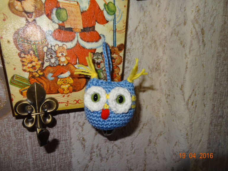 с Серафимом находилась няня, и как любая дама ключи искала по всей сумке. И вот, что бы с первой попытки их найти, связали мы ей вот такую совушку: