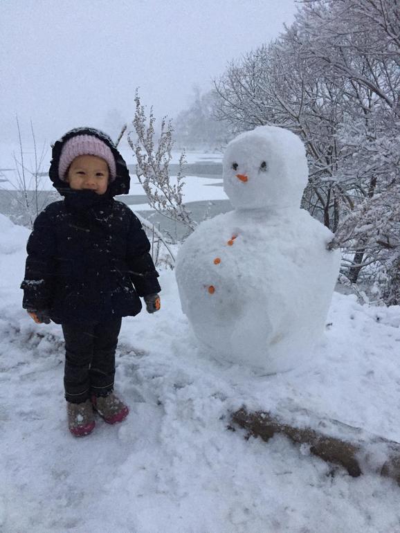 9 ноября у нас случился первый снегопад. Снег был очень мокрым, из него получались прекрасные снеговики. В планах было создание чего-нибудь по мотивам книжки "Снежный кролик", но уже на следующий день снег начал таять и покрылся ледяной коркой.