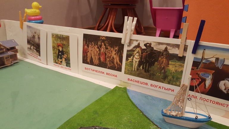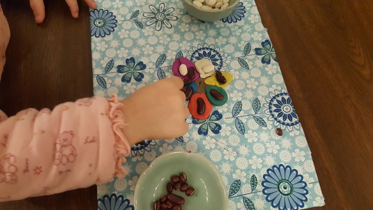 "Каркуша" - мини-версия игры "Фруктовый сад", играет полностью по правилам, в конце игры подсчитываем тайлы и определяем победителя. Кристина уже хорошо понимает, что значит победить в игре. С это игрой мы начали вплотную тренировать навыки счета.